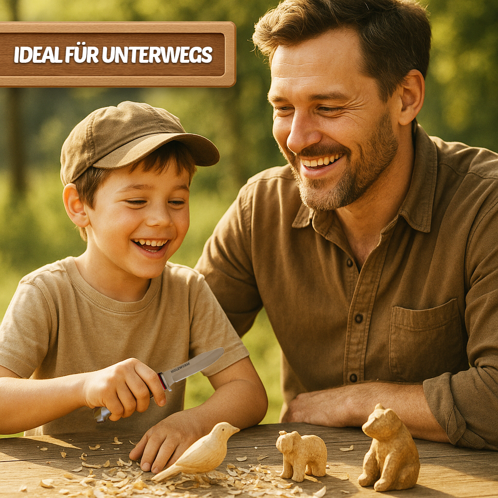 • VIELSEITIG – Dieses Kinderschnitzmesser eignet sich für das Basteln, das Schnitzen, als Camping-Messer oder auch einfach als Begleiter bei Ausflügen in die Natur.